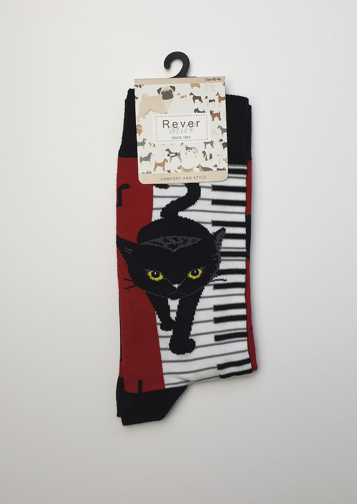 Añade un toque misterioso y divertido a tu look con estos calcetines con diseño de gato negro. Perfectos para amantes de los gatos y quienes quieren un accesorio original que destaque. Fabricados en materiales suaves y resistentes, ofrecen comodidad durante todo el día mientras su estampado elegante aporta personalidad a tus conjuntos casuales o relajados. También son un regalo ideal para fanáticos de los gatos o para quienes buscan detalles únicos en su vestimenta.